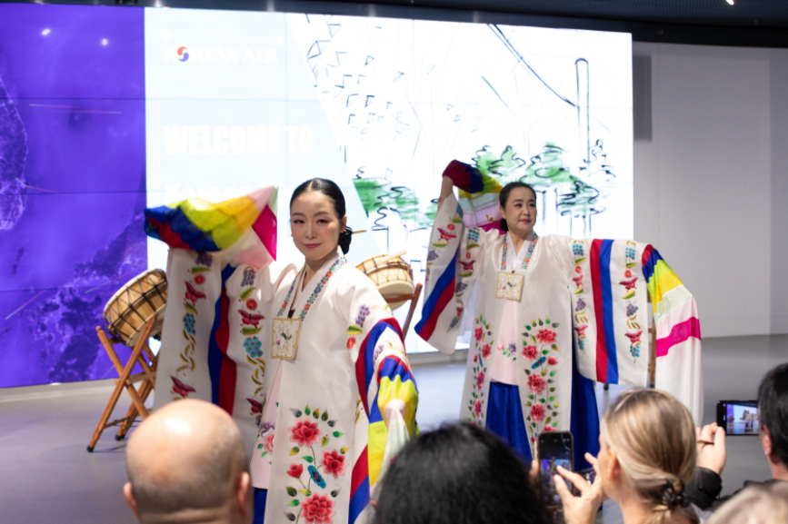 주독일한국문화원(원장 양상근)은 10월 17일(목) 프랑크푸르트 공항 방문객 센터에서 한국문화체험 행사를 개최했습니다. 공항 방문객 외 공항 관계자 및 관광업 종사자 등 이날 행사장을 찾은 참가자들은 한국의 전통무용과 전통문화상자 전시(사랑방 및 안방)을 통해 한국의 아름다움을 감상하고, 포토부스에서 사진으로 추억을 남기며 다양한 한국문화를 알아갔습니다. 한국과 독일간 항로 취항 40주년을 기념하여 마련된 이번 행사에는 대한항공과 프랑크푸르트공항공사, 한국관광공사가 함께해 의미를 더했습니다.