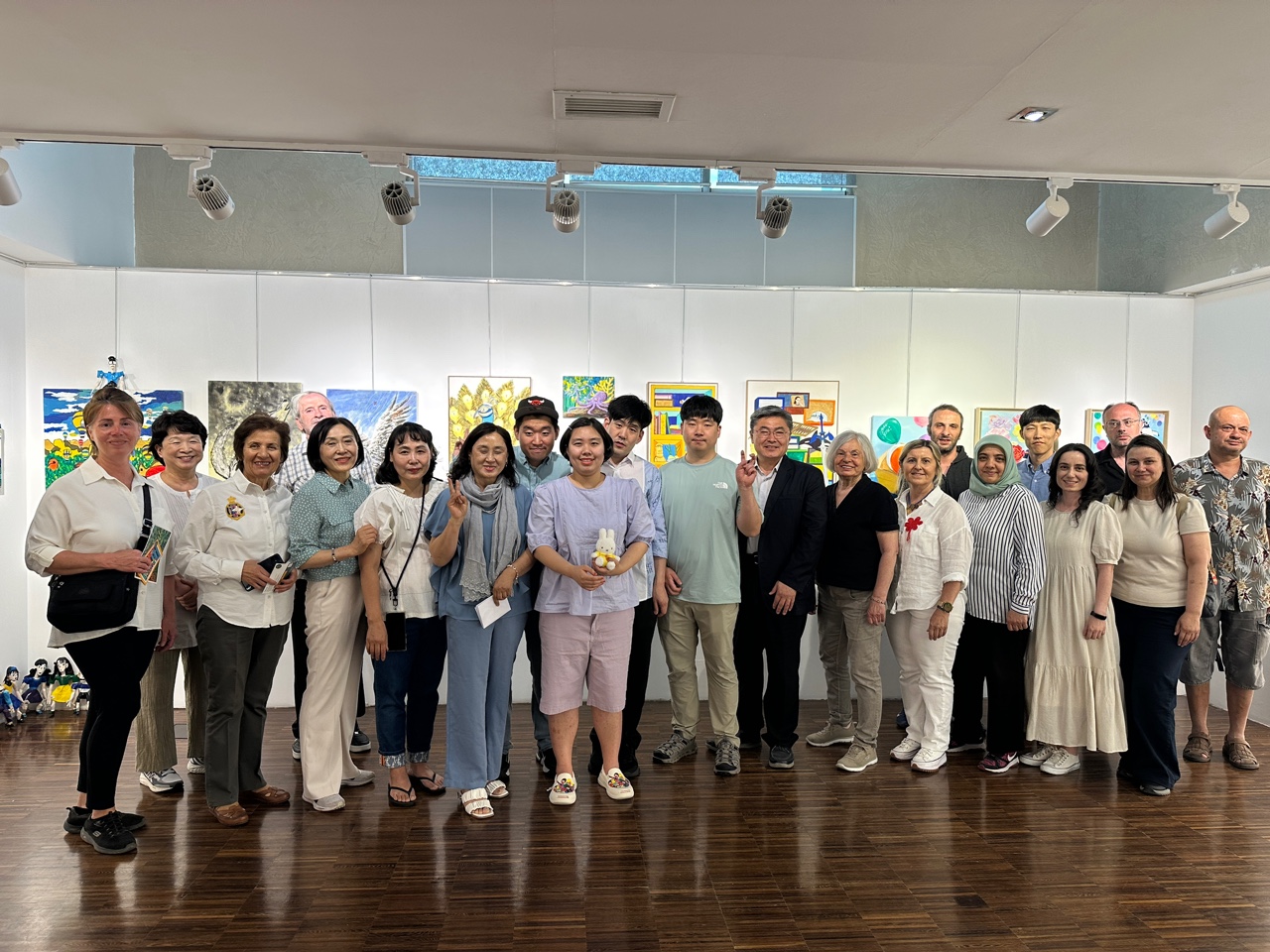 주튀르키예한국문화원은 6월 16일(월)부터 7월 25일(금)까지 문화원 전시실에서 ‘사랑은 국경을 넘어 전시회’를 개최한다. 동 전시는 발달장애 예술가들의 창작활동을 지원하는 아르브뤼코리아 사회적협동조합과 공동으로 주최하며 소속 9명의 작가가 참여하였다. 참여 작가는 권세진, 김기정, 금채민, 박태현, 손제형, 신의현, 정도운, 조영배, 최명은 작가로, 이 가운데 금채민, 박태현, 손제형, 정도운 작가는 개회식에 참여하여 주재국의 한국 예술 관심자들과 만남을 가졌다.