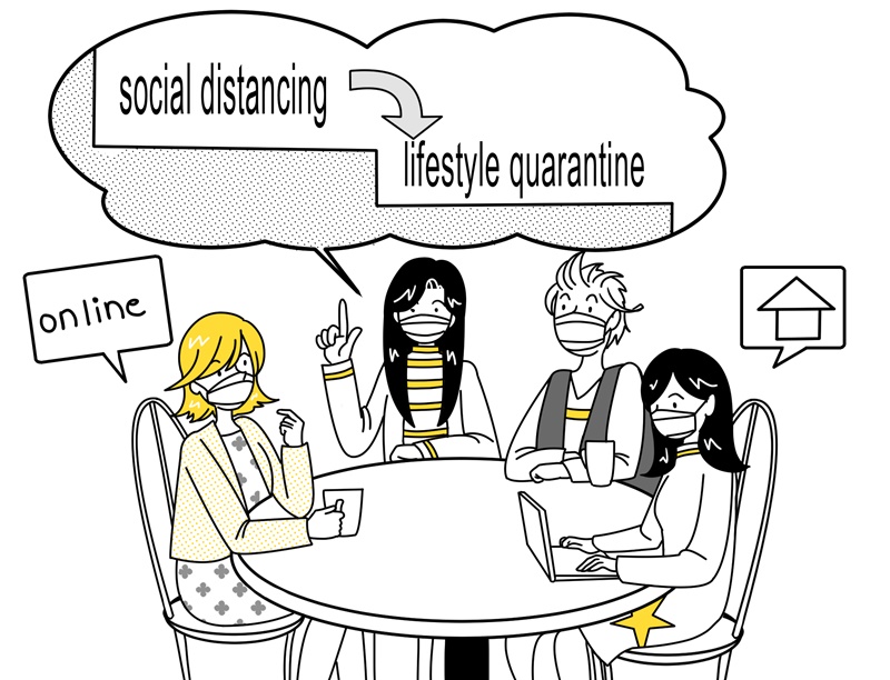 수현: 그렇지. 예를 들어 ‘마주보고 식사하지 않기’나 ‘음식은 개인 접시에 덜어먹기’ 등의 새로운 수칙들이 있어. 그럼 이제 내가 ‘생활 속 거리두기’에 담긴 핵심 수칙들을 알려줄게. 잘 알고 있으라고.